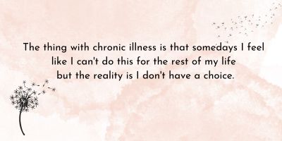 With chronic illness, we go through the cycle of grief over and over with each flare, new symptom or diagnosis. Talk to friends about what you are feeling, be open with your partner and seek professional help from a therapist who specializes in chronic illness.