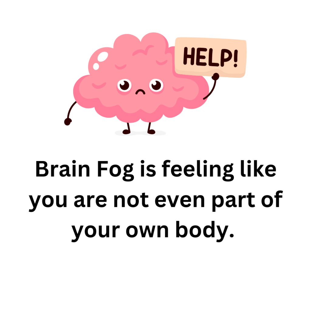Brain fog is not being able to recall words. Even simple words. It feels like you brain can not pull up the word that is on the tip of your tongue. Brain fog is the feeling of confusion. It is holding your med container and not remembering if you took them already. Feeling zoned out like your not even on the same plane of existence as everyone else.